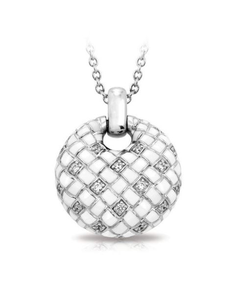 Belle Etoile Round Cubic Zirconia studded White Enamel Harlequin Pendant - 925 SS with chain
