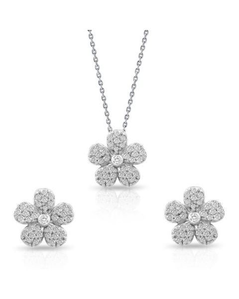 PARIKHS Rhodium Plated Flower CZ Necklace-Inlay Stud Earring Set in 925 Sterling Silver