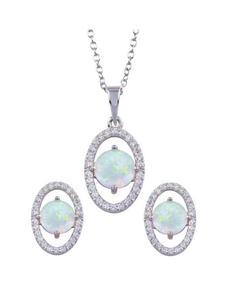 PARIKHS Rhodium Plated Synthetic Opal Teardrop CZ Necklace-Earring Set in 925 Sterling Silver