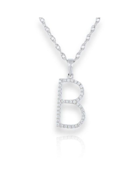 PARIKHS Diamond Initial Pendant Alphabet 'B' in 10K White Gold 0.10 ct , IJK color - I3 clarity