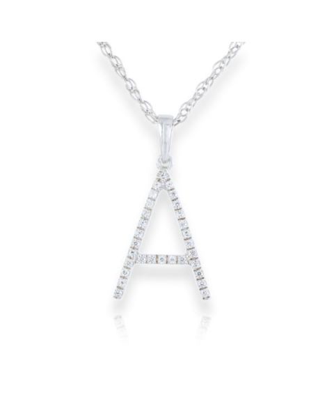 PARIKHS Diamond Initial Pendant Alphabet 'A' in 10K White Gold 0.10 ct , IJK color - I3 clarity